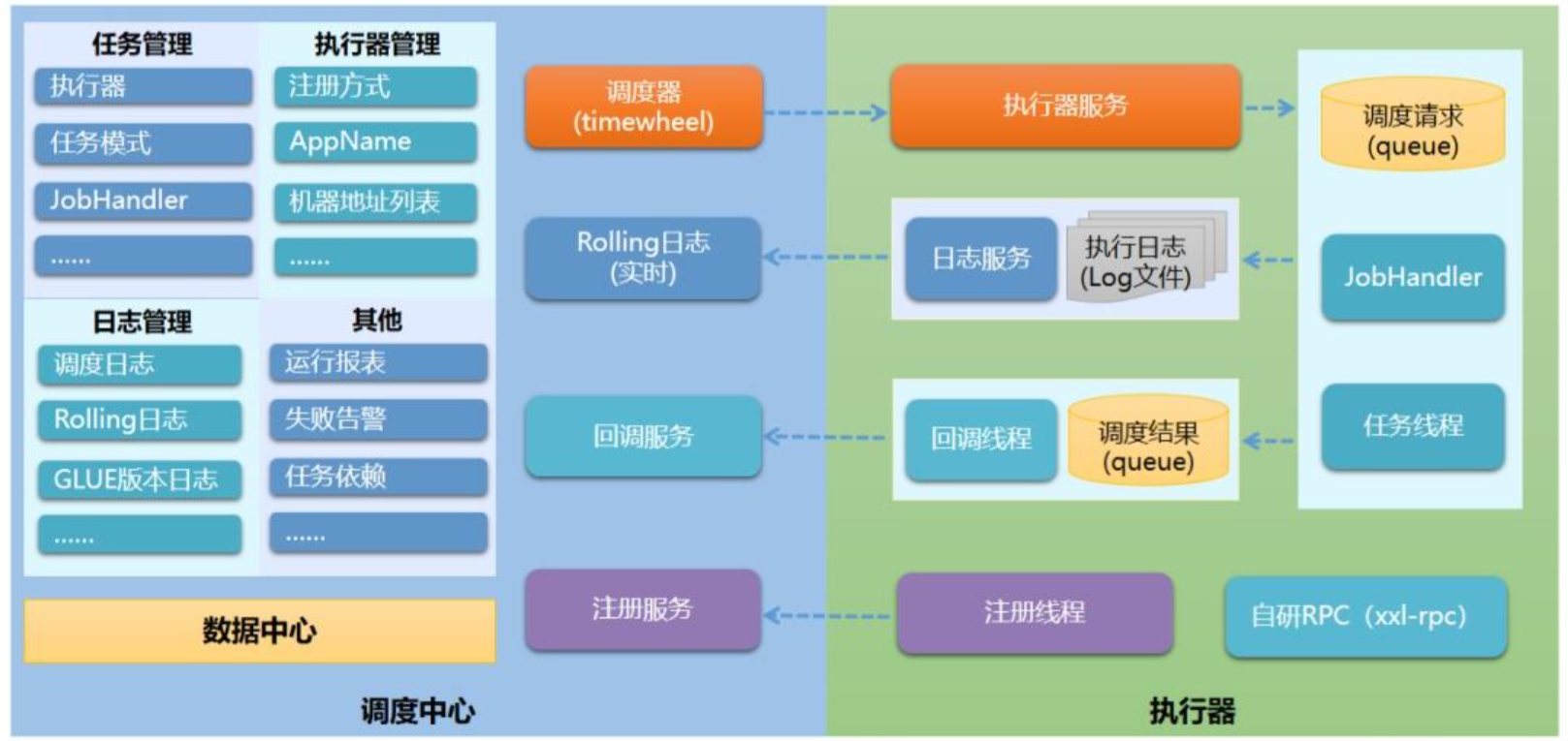 ## xxl-job-admin 搭建 xxl-job的运行依赖于 xxl-job-admin 所以在springboot上集成xxl-job的前提就是要安装 xxl-job-admin 有两种方式: 第一种:使用docker方式安装 xxl-job-admin 第二种: 下载代码,然后本地用idea启动或编译成jar包运行。 代码地址: https://gitee.com/xuxueli0323/xxl-job.git  xxl-job 架构图。 xxl-job-admin的代码下载好之后,切换到 2.5.0这个分支或tag。 我这里以 2.5.0这个版本为例。 导入sql。 在doc/db/tables_xxl_job.sql. 修改数据库的相关配置参数: ~~~ ### xxl-job, datasource spring.datasource.url=jdbc:mysql://127.0.0.1:3306/xxl_job?useUnicode=true&characterEncoding=UTF-8&autoReconnect=true&serverTimezone=Asia/Shanghai spring.datasource.username=root spring.datasource.password=123456 spring.datasource.driver-class-name=com.mysql.cj.jdbc.Driver ~~~ 然后启动:  我这里修改了端口,启动在了18080端口。 访问http://localhost:18080/xxl-job-admin/toLogin  账号admin 密码123456 ## 整合 SpringBoot 项目 #### 引入 maven 依赖 ~~~ <!-- xxl-job-core --> <dependency> <groupId>com.xuxueli</groupId> <artifactId>xxl-job-core</artifactId> <version>2.5.0</version> </dependency> ~~~ 此处版本要与 xxl-job-admin 中版本保持一致。 application.yml文件里增加配置: ~~~ # xxl-job xxl: job: admin: addresses: http://127.0.0.1:18080/xxl-job-admin/ # 任务中心地址 accessToken: executor: appname: my-job # 任务名称 见名之意且唯一 address: ip: port: 19999 #指定任务工程与admin工程心跳检测端口 注意该端口不是你的服务的端口,是特别指定的端口 logpath: ./logs/xxl-job/stock-job/ # 日志文件路径 logretentiondays: 30 # 日志文件保存天数 ~~~ > http://127.0.0.1:18080/xxl-job-admin/ 这个地址 不要配置错了,而且这个地址和你springboot**执行器**的项目的地址,IP要互通。 #### 添加一个配置类 XxlJobConfig ~~~ @Configuration public class XxlJobConfig { private Logger logger = LoggerFactory.getLogger(XxlJobConfig.class); @Value("${xxl.job.admin.addresses}") private String adminAddresses; @Value("${xxl.job.accessToken}") private String accessToken; @Value("${xxl.job.executor.appname}") private String appname; @Value("${xxl.job.executor.address}") private String address; @Value("${xxl.job.executor.ip}") private String ip; @Value("${xxl.job.executor.port}") private int port; @Value("${xxl.job.executor.logpath}") private String logPath; @Value("${xxl.job.executor.logretentiondays}") private int logRetentionDays; /** Spring整合XXL-JOB任务执行器 * 该执行器可调度当前工程下的一些子任务 */ @Bean public XxlJobSpringExecutor xxlJobExecutor() { logger.info(">>>>>>>>>>> xxl-job config init."); XxlJobSpringExecutor xxlJobSpringExecutor = new XxlJobSpringExecutor(); xxlJobSpringExecutor.setAdminAddresses(adminAddresses); xxlJobSpringExecutor.setAppname(appname); xxlJobSpringExecutor.setAddress(address); xxlJobSpringExecutor.setIp(ip); xxlJobSpringExecutor.setPort(port); xxlJobSpringExecutor.setAccessToken(accessToken); xxlJobSpringExecutor.setLogPath(logPath); xxlJobSpringExecutor.setLogRetentionDays(logRetentionDays); return xxlJobSpringExecutor; } } ~~~ 添加一个任务类 MyJobHandler ~~~ @Component public class MyJobHandler { @XxlJob("demoJobHandler") public void execute() { System.out.println("任务执行成功!当前时间:" + new Date()); } } ~~~ 启动spring 项目。 然后进入 xxl-job-admin的控制台 进行一些配置。 1、添加执行器:  注意: my-job 这个名称,取自 application.yml的里的配置的名称。。要一致。 我这里使用了手动注册,自动注册应该也是可以的,,只是我没有注册成功。。 - 自动注册:确保上面的address的址 能通,如果是配置的127.0.0.1的这种地址,那么执行器和调控中心 得在一台机器 上,否则的话 配置成局域网或公网IP地址,也可以是域名。 2、添加任务  这里的执行器,就选择上一步 你刚刚添加的执行器,然后cron配置好,我这里配置提每10秒运行一次。。  保存之后,可以启动,也可以执行一次,然后看效果。。在springboot的控制 台 会有打印日志。 xxl-job-admin 里也可以查看每次调度的日志(上图的:查询日志),比如我这里每10秒执行一次,那么每次执行的结果 都可以查看。  - 动态添加任务 xxl-job可以通过 注入: ~~~ @Autowired(required = false) private AdminBizClient adminBizClient; ~~~ 来动态添加任务。但是注入是有条件的,需要增加相应的配置代码。 - 删除已存在的任务,这里是先查,后删 ~~~ // 执行器ID int groupId = 4; // 先删除已存在的任务 XxlJobListParam param = new XxlJobListParam(); param.setStart(0); param.setLength(10); param.setJobGroup(groupId); param.setJobDesc(JOB_GROUP_ORDERLY_LABEL + updateReqVO.getId()); param.setExecutorHandler(JobHandleConstant.ORDERLY_CHARGE); param.setTriggerStatus(1); try { ReturnT<String> str = adminBizClient.pageList(param); String content = str.getContent(); Map<String, Object> map = GsonTool.fromJson(content, Map.class); List<LinkedTreeMap> maps = (List<LinkedTreeMap>) map.get("data"); if (!CollectionUtils.isEmpty(maps)) { for (LinkedTreeMap treeMap : maps) { Double id = (Double) treeMap.get("id"); adminBizClient.removeJob(id.intValue()); } } } catch (Exception e) { log.error("删除上线任务失败,{}", e.getMessage()); } ~~~ - 新增任务 ~~~ // 新增任务 try { XxlJobInfoParam job = new XxlJobInfoParam(); job.setJobGroup(groupId); job.setJobDesc(JOB_GROUP_ORDERLY_LABEL + updateReqVO.getId()); job.setExecutorHandler(JobHandleConstant.ORDERLY_CHARGE); job.setExecutorParam(updateReqVO.getId().toString()); // 每10分钟执行一次 job.setScheduleConf("0 */10 * * * ? *"); ReturnT<String> str = adminBizClient.addJob(job); String content = str.getContent(); if (StringUtils.isNotBlank(content)) { // 开启任务 adminBizClient.startJob(Integer.parseInt(content)); } } catch (Excepti
